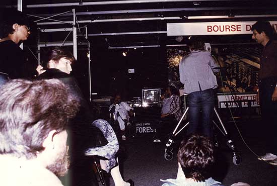 For a period of five weeks, the artist turns an exhibition space in the Centre Pompidou into the nerve center of a nationwide exchange of fictitious news items that are composed by members of the public. It is equipped like the headquarters of a news wire service with a phone bank (handling up to 8,000 calls a day), a computerized database, video production facilities, and a full range of office equipment. Working 24 hours a day, its staff of 15 are responsible for gathering, editing, displaying, archiving, and rating the news items—tabloid-type stories with an emphasis on sex, death, transgression, the unusual, and the absurd (not unlike much of modern art)—that are sent in from outside “correspondents” and produced on the spot by visitors. A national toll-free number set up so that interested members of the public can find out the highest rated story of the day. The operation lays bare the blurring of the boundaries between information, art, commerce, and the collective subconscious that is so characteristic of postmodern culture.