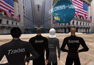 Come join us in large numbers in Second Life or on the sidewalk outside the Lab Gallery for this special dance marathon. The more the merrier! The Traders’ Ball will continue daily through July2nd, 2010. The success of this event depends as much on your mass participation as it does on the unfailing generosity of the world’s bankers, pension funds, and the dedicated public servants responsible for the regulation of the financial markets.