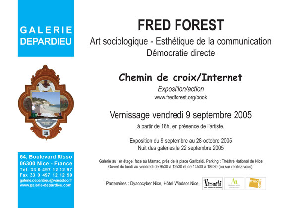 Fort d'une position de reconnaissance toujours plus forte au niveau international (une grande rétrospective en Amerique du Sud Sao à Paulo + une création avec le Bass Museum de Miami en Floride + l'entrée de l'ensemble de son oeuvre au patrimoine national en France, l'artiste, pionnier de l'art vidéo et du Net art, pousse le bouchon plus loin en mettant en cause le "politique". Il considère en effet que le rôle des artistes ne doit plus être réduit aux manipultations liées, par institution interposées, au marché de l'art, mais que dans la société d'information, la maîtrise de la communication doit lui permettre, aujourd'hui, de revendiquer d'être un acteur à part entière de la société pour faire du sens. Comme le disait Pierre Restany qui a defendu son travail jusqu'au dernier moment de sa disparition : " l'art, selon un mouvement irreversible, effectue désormais un déplacement de l'esthétique vers l'éthique " Sans se vouloir jouer les moralisateurs, Fred Forest, d'une façon singulière, réintroduit dans l'art contemporain la dimension de l'éthique.C'est là un signe qui ne trompe pas dans notre besoin fondamental de construire (reconstruire) de nouvelles valeurs pour le troisième millénaire.