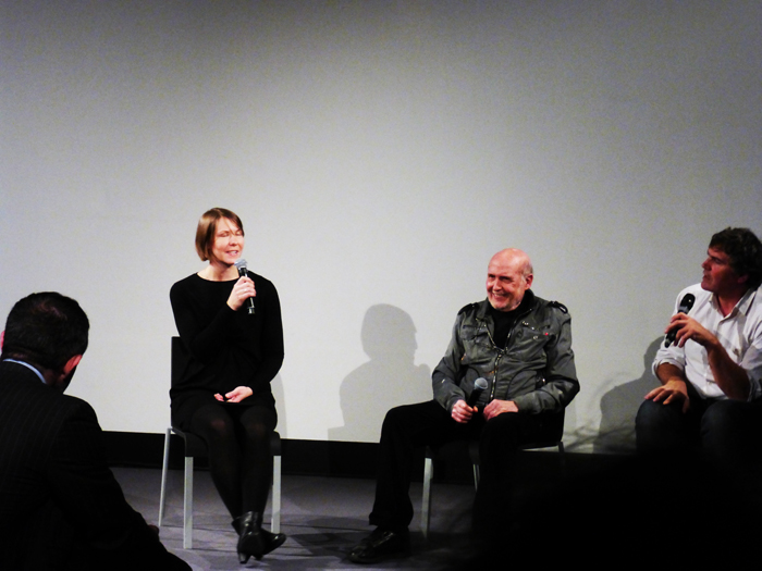 (Sur la photo de droite à gauche, Paul Ardenne, Fred Forest, Ruth Erickson, de dos face à eux Alain Seban, Président du Centre Georges Pompidou...)