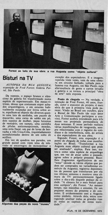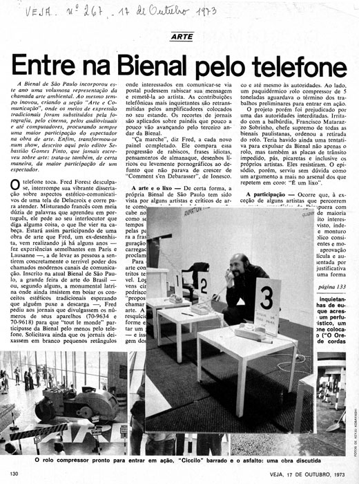 Dans l'enceinte de la Biennale Fred Forest pocède à des interiews musclées aupres des officiels abordant des sujets politiques concernant directement la liberté d'expression et celle des artistes.. La diffusion sauvage de ces documents embarrassera bien entendu beaucoup la direction de la Biennale qui n'avait pas partie liée avec junte militaire, mais qui devait nécessairement rester sur une certaine réserve par prudence.