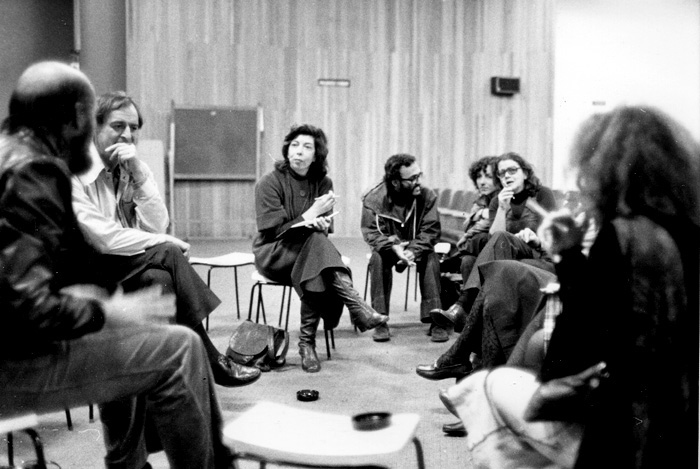 Sur la photo, il s'agit de la préparation en 1975 de l'action crtiique Biennale de l'An 2000, en présence de Walter Zanini, d'Amelia Toledo, Alesia Pacheco Chaves, Radha Abramo et d'autres artistes contestant la XIII Biennale de Sao Paulo officielle. Le projet de l'artiste consistait à prétendre à l'époque que nous étions déjà en l'an 2000 (alors que nous étions en 1975...) et que les Biennales etaient devenues alors des instruments d'analyse critique et historique. Ce qui permettait, en temps reel, aux artistes contestant la Biennale officielle de 1975, d'en faire la critique d'une façon parodique. Il faut signaler le courage de Walter Zanini et des artistes brésiliens qui n'hésitaient pas ainsi à braver le pouvoir le junte militaire toujours en place. Cette Biennale de fiction a eu un veritable succès national car :